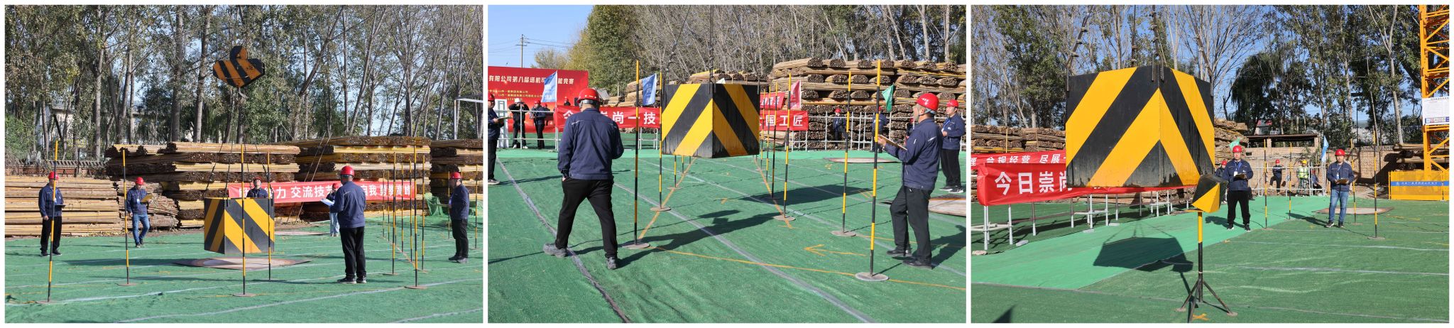 竞赛采用理论考试和现场实操相结合的方式进行。赛场上,参赛选手操作稳准、动作规范,按照规定路线准确、流畅完成吊物定点停放、杆道内运行及撞击标准物体的规定动作,展示了“快、准、稳”的吊装综合能力,展现出一建集团塔机司机良好的职业素养与操作能力。