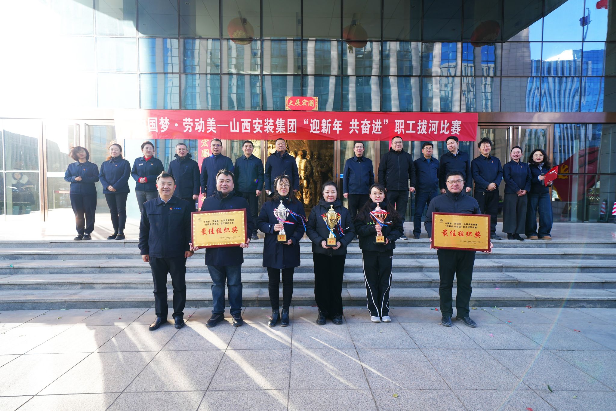 12月20日,山西建投安装集团的星引擎广场被激情与活力点燃,一场以“迎新年 共奋进”为主题的职工拔河比赛在此热烈开展。党委专职副书记、工会主席张琰,各基层单位工会主席出席活动。