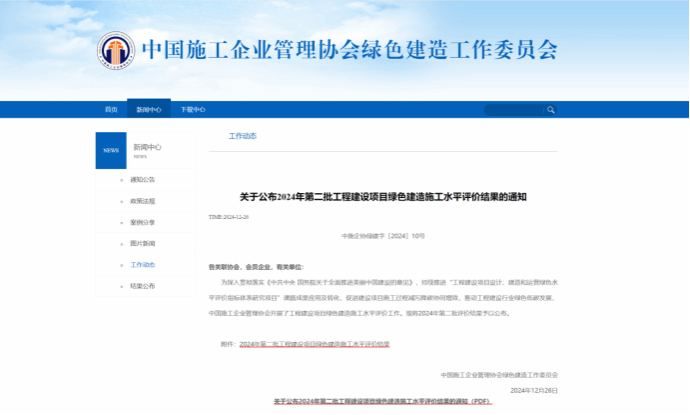 绿色建造施工水平评价是为贯彻国家绿色发展政策,加强资源节约与高效利用,推进减污降碳的建造方式,提升工程建设行业绿色建造水平而设立的综合评定。该评价由中国施工企业管理协会负责,绿色建造工作委员会组织实施,评价结果分为“三星”“二星”“一星”,其中“三星”为最高水平。