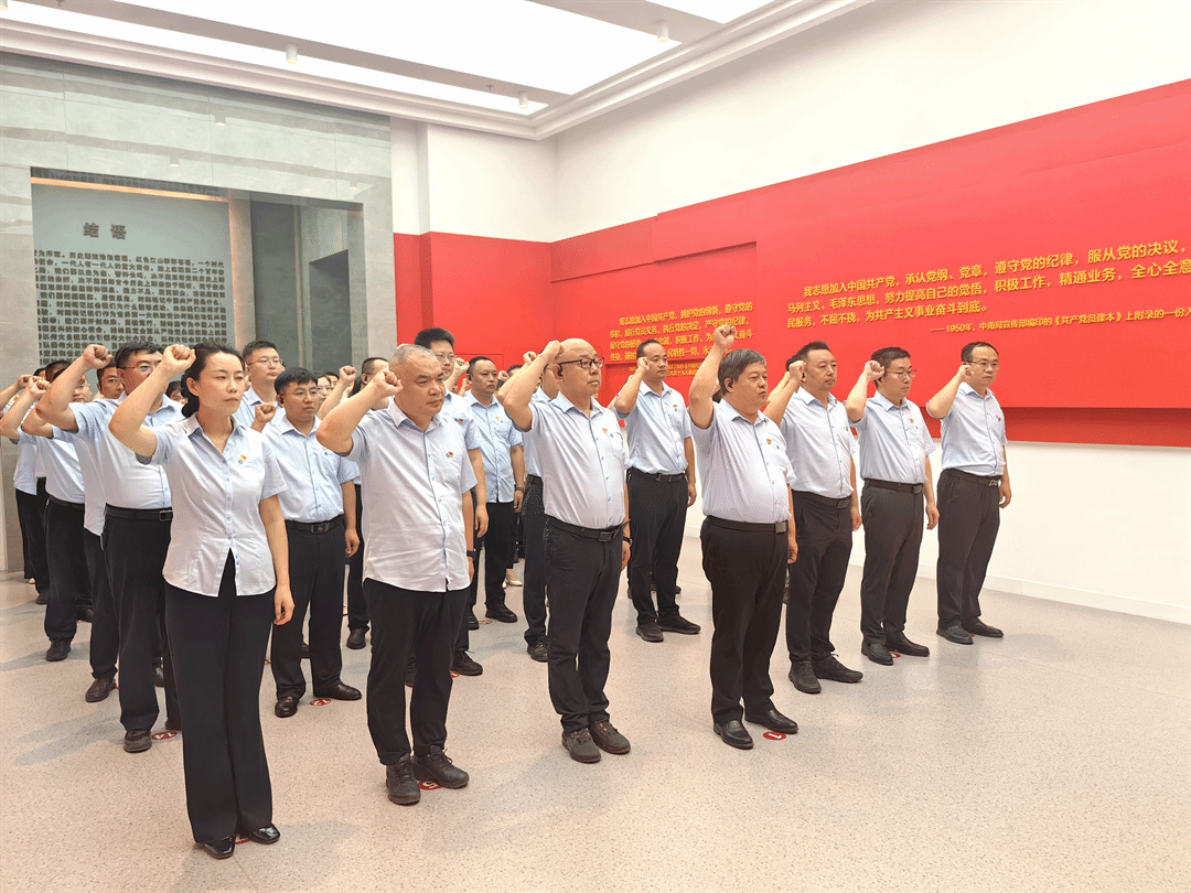 参观结束后,党员干部面对鲜红党旗重温入党誓词。一句句铿锵有力的誓言,表达了大家对党忠诚、严守纪律的坚定信念和决心。