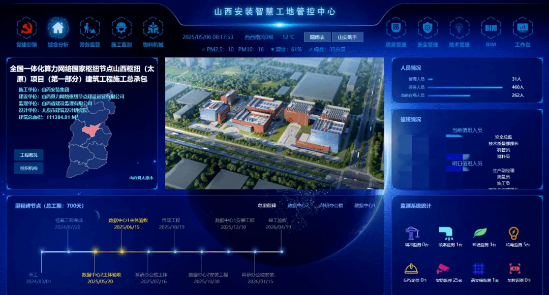 在技术应用方面,党支部系统应用空气能集中供能、36V安全电压及智能充电柜等技防手段,日均保障50余次安全充电,从本质上消除用电隐患。此外,应用自主研发的智慧工地管控平台,打造高支模检测及基坑检测系统,通过自动化监测技术实时获取基坑水平位移、变形、沉降等数据,实现超限预警、危险报警和秒级响应,有效降低重大安全风险。