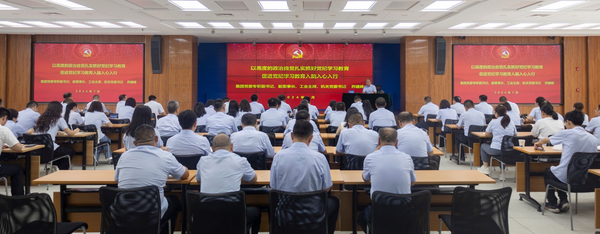 党委专职副书记、副董事长、工会主席、机关党委书记乔建峰以《以高度的政治自觉扎实抓好党纪学习教育 促进党纪学习教育入脑入心入行》为题讲授党纪学习教育专题党课。
