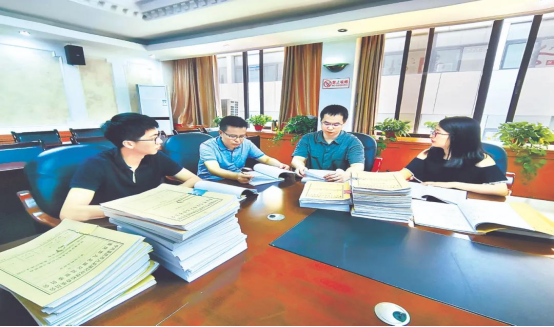 图为九龙坡区纪委监委案件审理室工作人员研究冯海军案定性相关证据。向导 摄