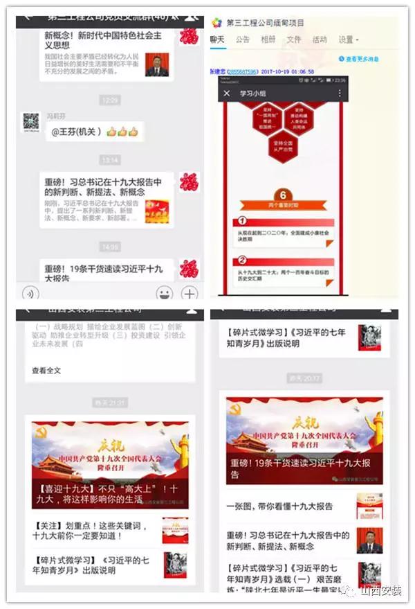 第三工程公司党总支第一时间在自有微信公众号、工作群等载体上宣传学习党的十九大精神。