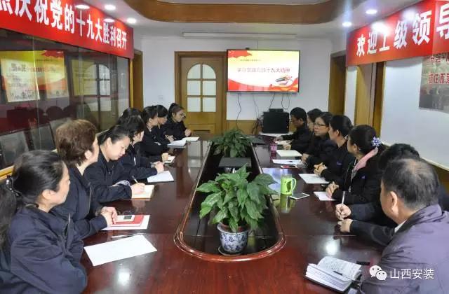 学习贯彻党的十九大精神,是当前和今后一个时期的首要政治任务。山西安装集团各级党组织积极学习贯彻党的十九大精神,努力掌握党的十九大精神的精髓要义,在学懂、弄通、做实、促行上下功夫,引导企业广大党员、干部把思想和行动统一到党的十九大精神上来,把智慧和力量凝聚到实现党的十九大确定的各项任务上来,更加坚定地维护习近平总书记的核心地位,更加坚定地维护党中央权威和集中统一领导,更加坚定地贯彻党中央决策部署,把党的十九大精神落到实处。
