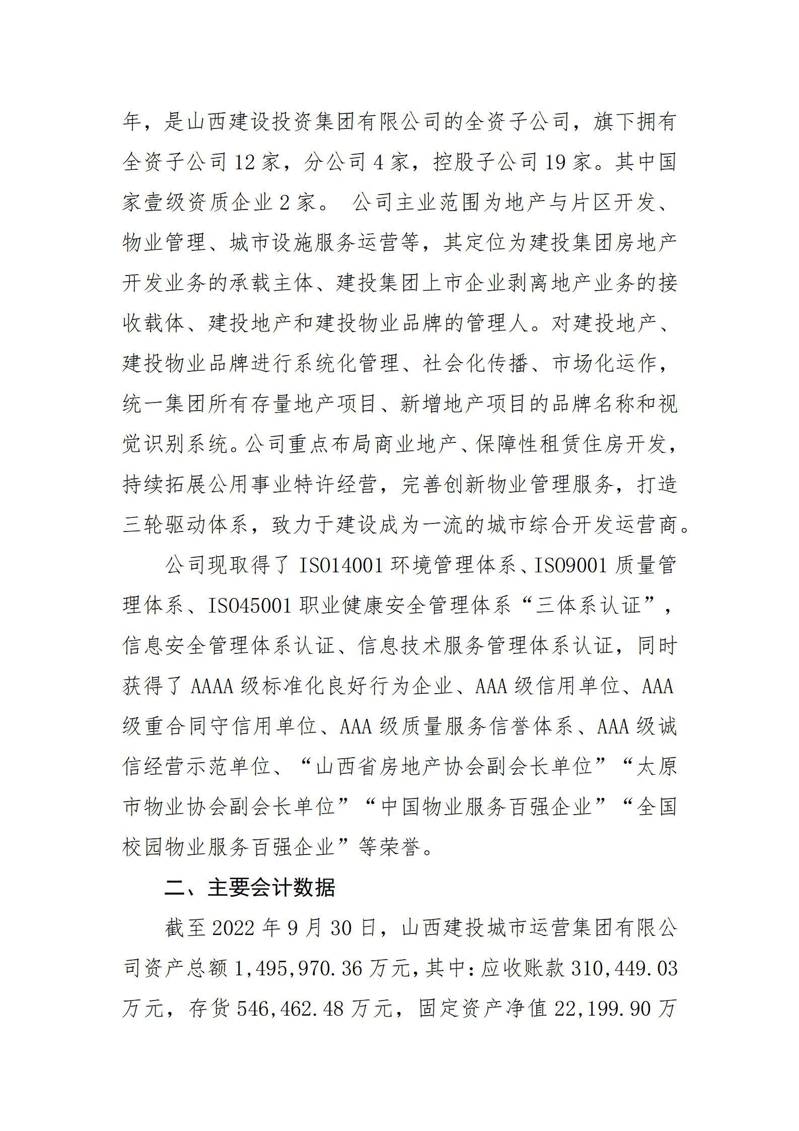 山西建投城市运营集团有限公司所属23户子公司及11户划转企业2022年三季度财务等重大信息